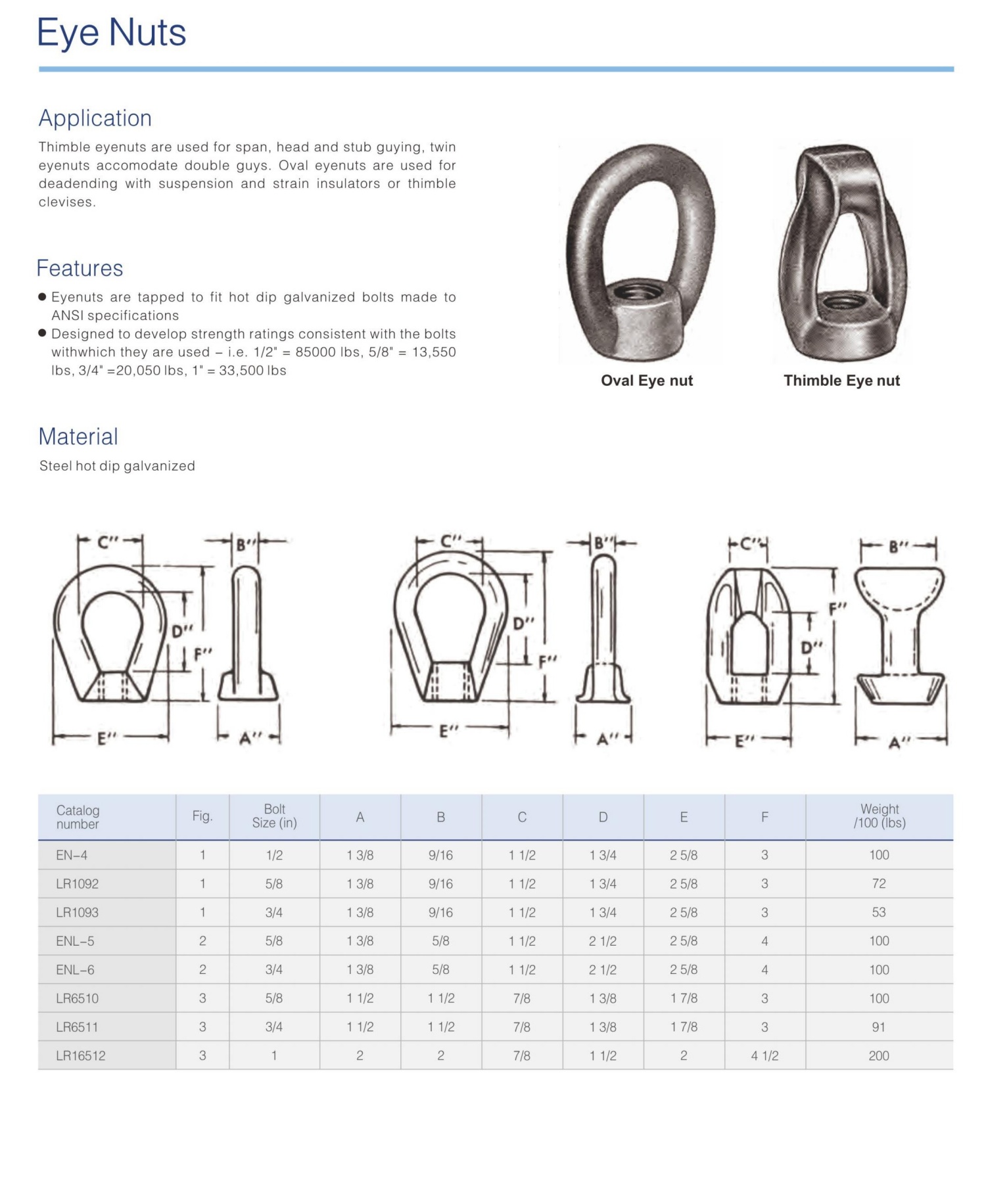 Select the eye nut size based on ADSS/OPGW cable diameter and pole hardware specifications.